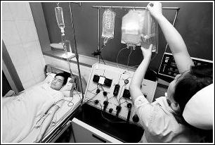 昨日爱心使者高航宇正在唐都医院采集造血干细胞。文/图记者侯智实习生杜静波