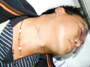 昨日15时左右,被邹建洪打伤住进医院的忠县新立镇中学黄传军老师介绍,18日约14时10分,他正在家中午休,突然接到高二四班学生潘欢的电话称,他在教学楼三楼被两名不认识的男青年打了。