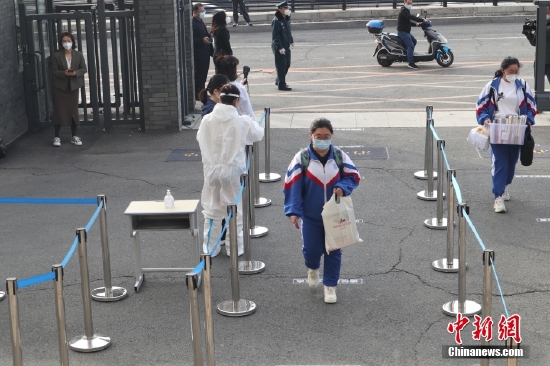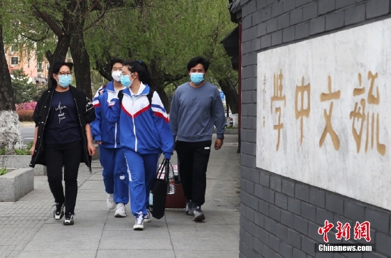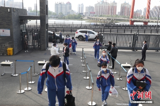 5月5日,吉林省吉林市,一所中学的高三学生有序进入校园。当天,吉林市高三年级复课。 中新社记者 苍雁 摄