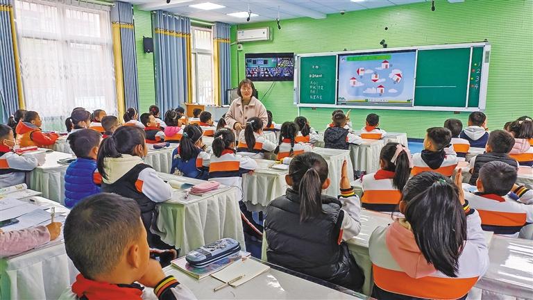 三月二十二日,石泉县城关二小与中池小学、曾溪小学开展互动课堂。 本报记者 郭妍摄