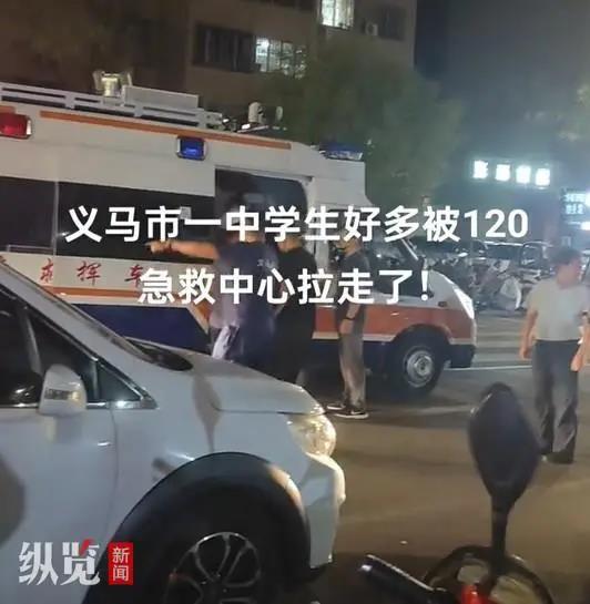 网友称义马市第一初级中学多名学生被救护车拉走。(来源/视频截图)