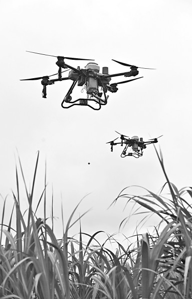 广西上思县某农场应用植保无人机智能投放技术。新华社发