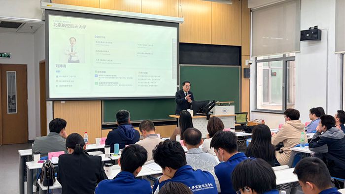 会上,北京航空航天大学教授、陆士嘉实验班指导办公室主任刘沛清详细介绍了第一期科研课题的导师阵容、研究方向及配套资源支持。他表示,本期共有9位导师参与,涵盖空气动力学、气动声学、飞行器环境、结构强度、航天技术及智能技术6大方向,共提供18个具体课题。代表性课题示例涵盖刘沛清教授的“螺旋桨气动噪声实验研究”、袁丁教授的“城市三维场景建模”及徐大军教授的“月球车遥控操作研究”等前沿课题。