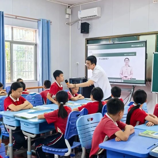 海南省五指山市番阳中心学校应用国家平台双师课堂场景进行科学学科教学。