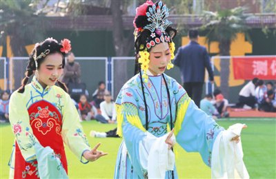 星报讯 11月20日,泗县大路口中心校运动会开幕式上,一曲原创泗州戏《家校谱华章 共赴中国梦》惊艳亮相。来自泗城一小的“小戏骨”们身着精致戏服,唱腔婉转悠扬、身段韵味十足,将国家级非遗的独特魅力展现得淋漓尽致,为充满活力的运动会注入了浓郁的传统文化气息,赢得现场师生阵阵喝彩。