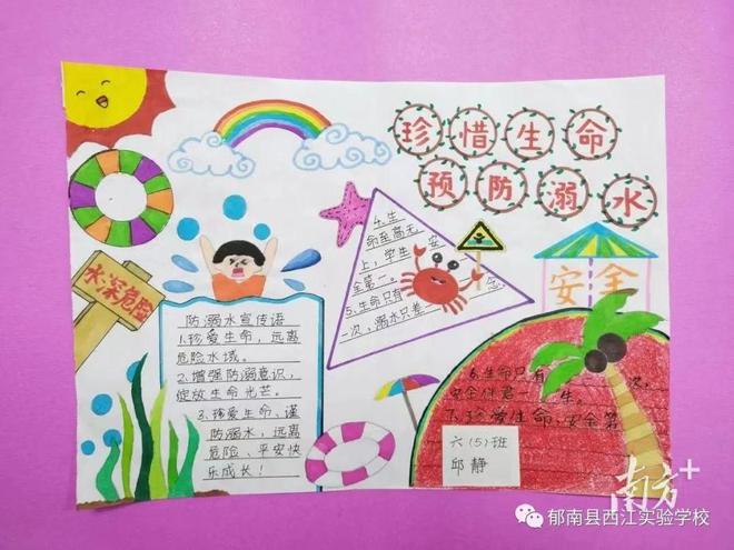郁南各校组织学生和家长观看“广东省青少年防溺水警示片”,以典型案例警示学生生命只有一次;以防溺水为主题,积极组织各班开展了手抄报评比活动;给家长发放了《致家长的一封信》,提醒家长对孩子的行踪要做到知去向、知归时、知同伴、知内容。