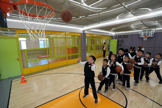 “近年来,我们积极挖掘空间潜力,通过开发空地、空房、过道、楼顶、地下空间等‘上天入地’举措,陆续建成楼顶足球场、楼间连廊、体操房等活动空间,共增设运动场地3000平方米,相当于7个标准篮球场的面积,极大地满足了学生的运动需求。”该校副校长曹京说。