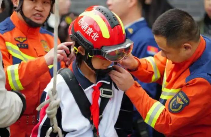 在充分的安全保护措施下,部分勇敢的同学也在消防员的协助下,体验了滑杆过程,深刻体会到消防员出警时的速度与担当。