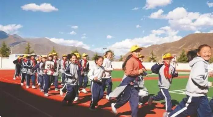 图为拉萨市墨竹工卡县南京实验小学四年级学生开展大课间体育活动。 记者 格桑伦珠 摄