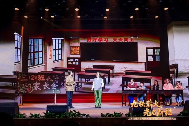 师生们自编自演的校庆剧《我们走过的路》取材于学校真实历史,通过四个篇章讲述了一个跨越90年守护童心的故事——抗战时期,教师在艰难环境中坚持开课,守护孩童求知之光;上世纪70年代,老师以爱心和耐心组建红领巾班,呵护童真成长;改革开放后,学校积极推动教师专业发展,提升育人质量;进入新时代,学校深化“童味教育”,让每个孩子被看见、被尊重、被赋能。