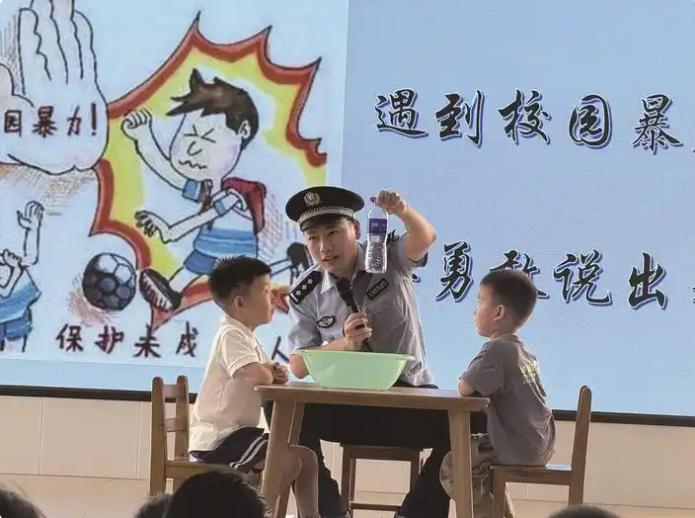 9月8日上午,海盐县公安局武原派出所民警走进武原万禄幼儿园,通过与小朋友共同做趣味小实验的方式,讲解如何预防校园暴力,提高小朋友防范意识。N沈晖 摄