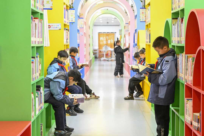 1月27日,在安徽省合肥市图书馆,来自合肥市亳州路小学的小学生正在认真阅读书籍。