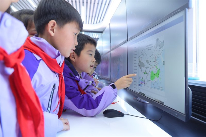3月19日,平乡县第四小学学生在县气象局参观学习气象知识。