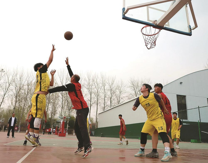 今年以来,玉田县职业技术教育中心以阳光体育大课间为基础,课外体育社团活动为延伸,新增篮球、羽毛球等多种课间体育活动,让学生们在运动中享受乐趣、增强体质。图为该校学生正在参加篮球比赛。本报记者 梁赞英 通讯员 叶剑宇 摄