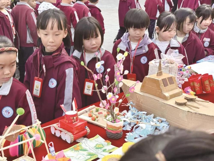 无论是小学部还是初中部的作品,裁剪、粘贴、拼接、涂色……每一步都藏着巧思,每一件作品都独一无二。大家尽情发挥想象,在动手实践中感受创作的乐趣,在专注中收获满满的成就感,让平凡的材料焕发出别样光彩。活动吸引了众多学子前来观看,大家认真观展,巧筑匠心。