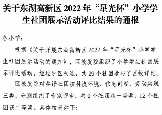 祝贺光谷九小在东湖高新区2022年“逐光杯”作业设计评比和“星光杯”小学学生社团展示活动中喜获佳绩
