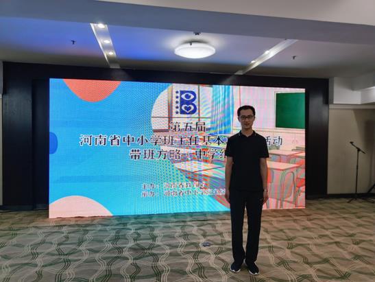 7月3日至5日,由河南省教育厅主办,河南省中小学班主任研究中心承办的第五届河南省中小学班主任基本功展活动在省会郑州举行,来自全省各地的100余位班主任进行了育人故事、带班方略、案例答辩、主题班会、才艺特长等“五项全能”的现场展示。经过3天的激烈比拼,开封市第二十五中学教师贾斋荣获一等奖,并作为代表参与《百年征程的接力:班主任素养提升工程2021》新书揭幕和赠书仪式。