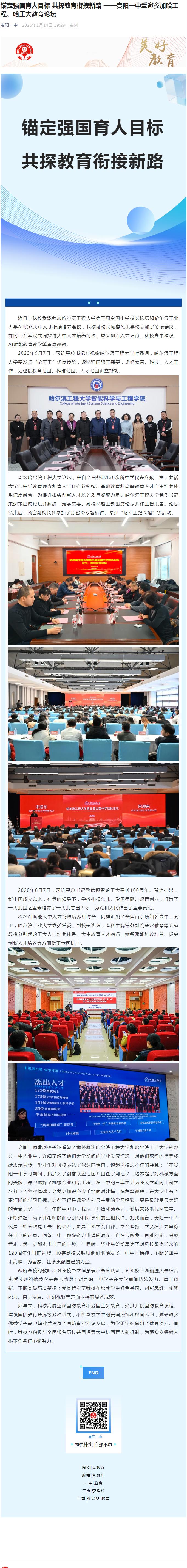 锚定强国育人目标 共探教育衔接新路 ——贵阳一中受邀参加哈工程、哈工大教育论坛