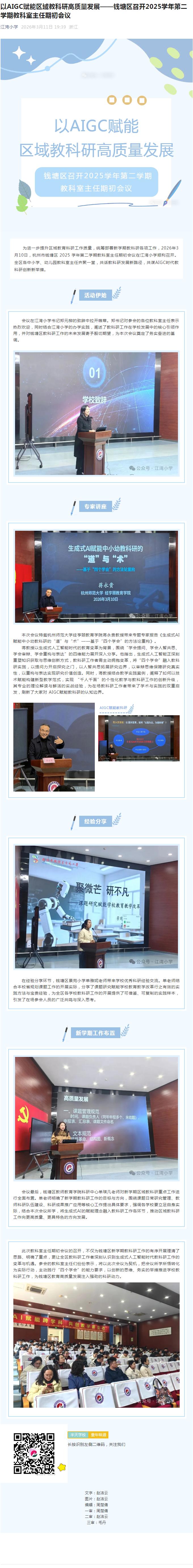 以AIGC赋能区域教科研高质量发展——钱塘区召开2025学年第二学期教科室主任期初会议