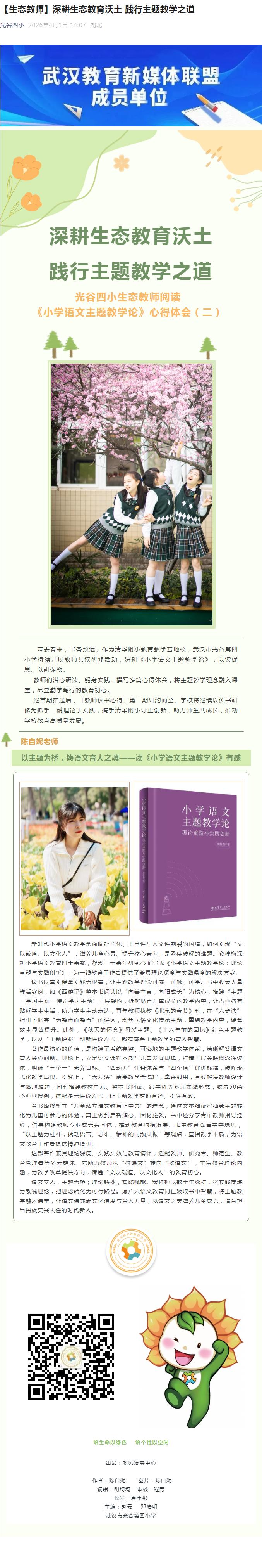 寒去春来,书香致远。作为清华附小教育教学基地校,武汉市光谷第四小学持续开展教师共读研修活动,深耕《小学语文主题教学论》,以读促思、以研促教。