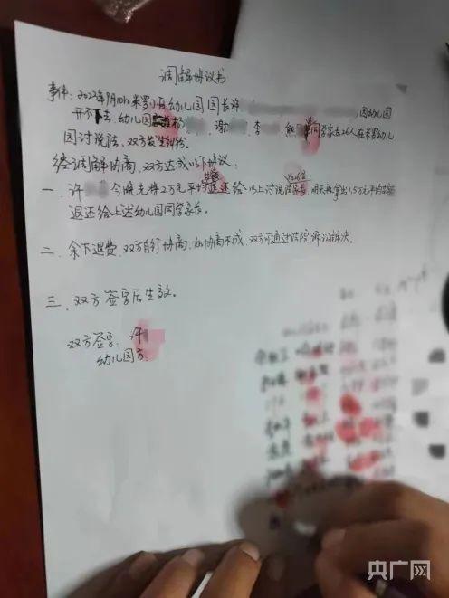 培尔米罗幼儿园与家长的调解协议书(央广网发 学生家长供图)